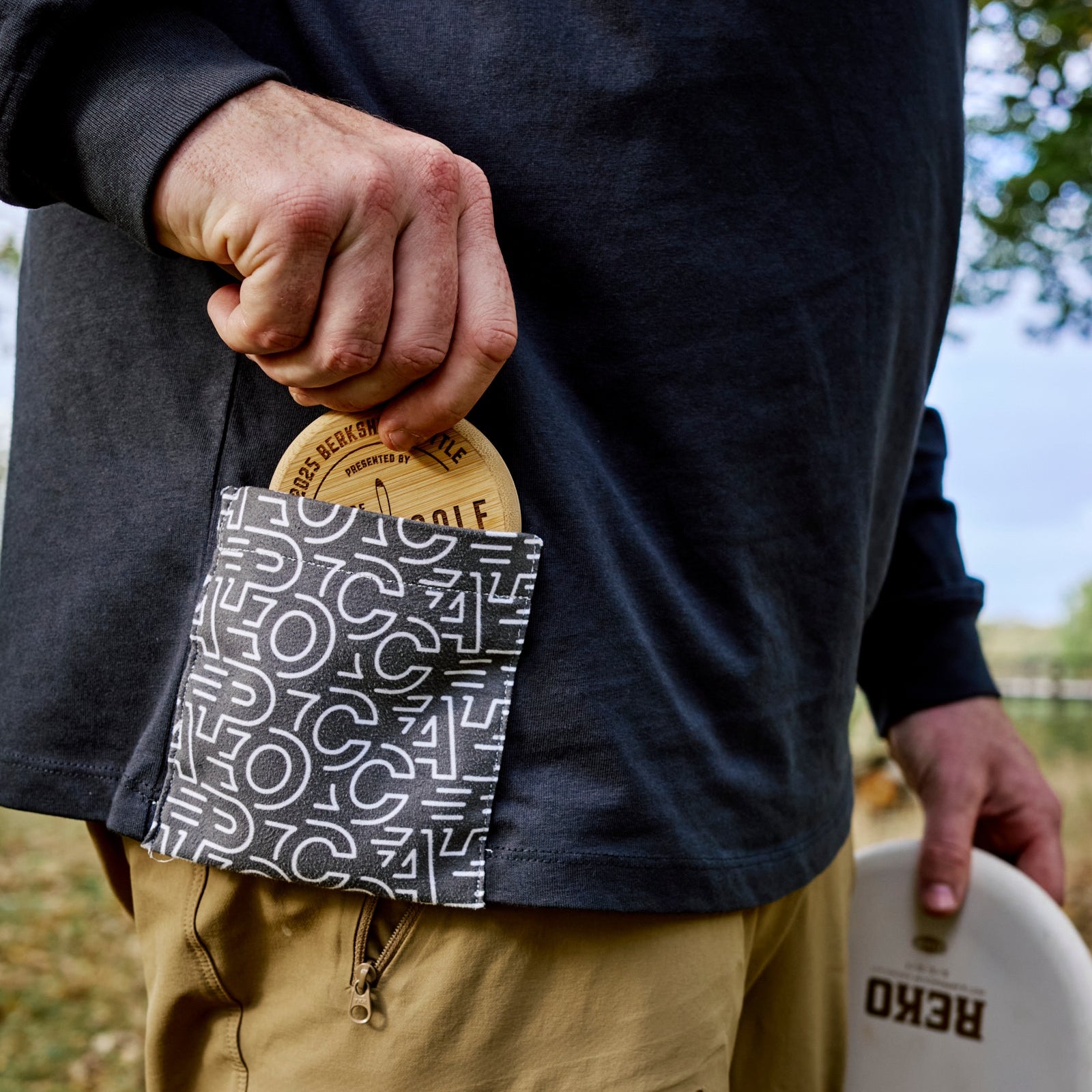 The feature that gave us our name: a recycled microfibre pocket that holds your mini disc securely, from tee to green.